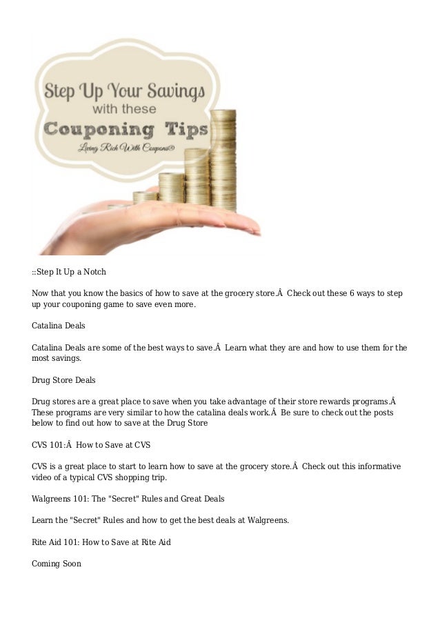 Step by Step Couponing Guide for Beginners - Thrifty & Crafty In this article I will list a step by step couponing guide and some of my top tips to make couponing a much less intimidating subject and get you on the road to the grocery store with coupons in hand. Step 1: Use Social Media/ Blogs I follow a lot of local Facebook and Instagram pages that post awesome deals and that are super informative. Couponing Tips for Beginners: 3 Simple Steps - Sunday Coupon Inserts Step 2: Get Organized. Organizing is one of the best couponing tips for beginners. It may seem trivial, but keeping things orderly will let you quick-draw the right coupon at checkout, or plan your shopping trip well before you leave the house. All couponers have their own favorite method.