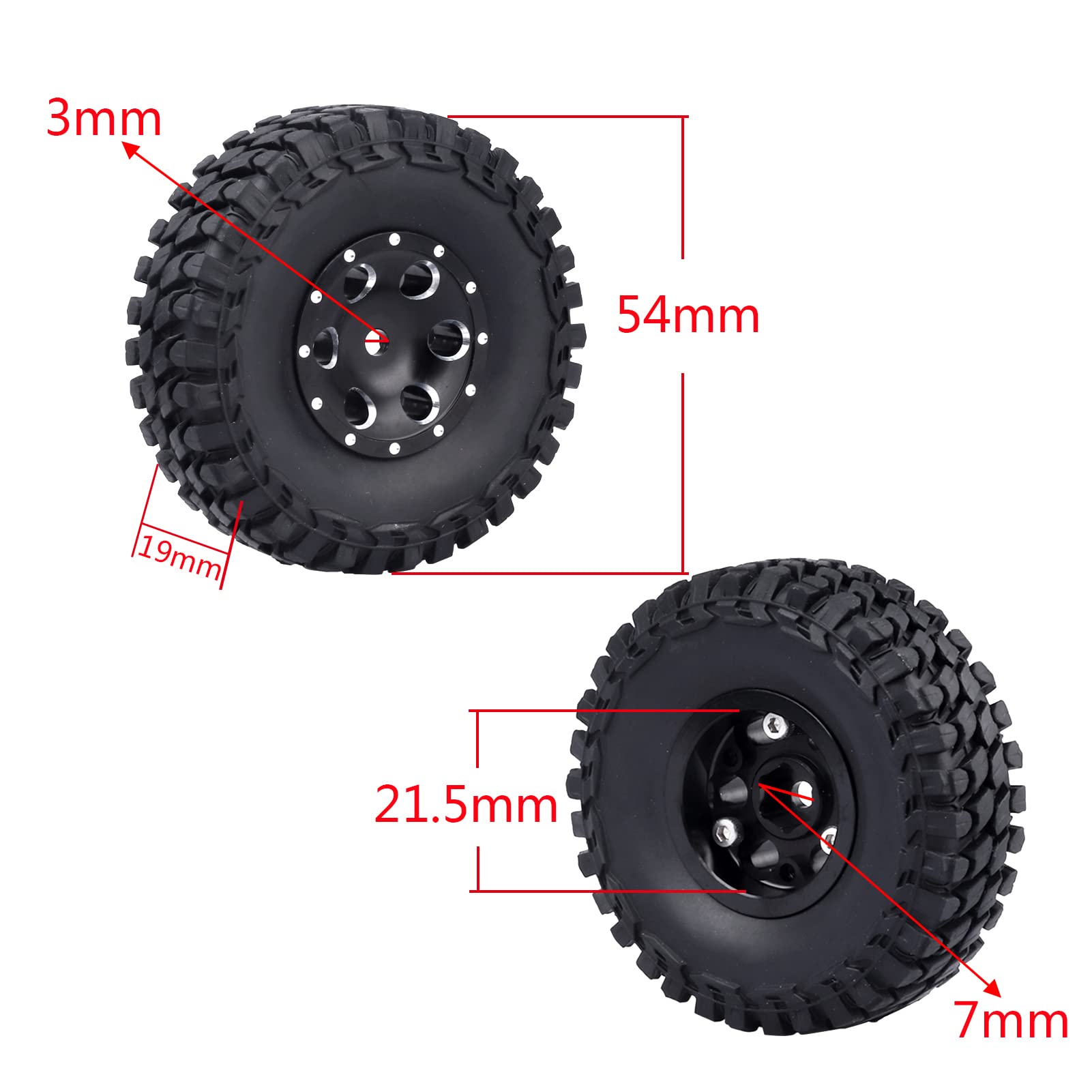 Hobbypark 1.0 Beadlock Wheels and Tires 4Pcs Metal Micro Crawler Tires w/Foam Inserts with Extended Wheel Spacers Offsets for 1/24 RC Crawler Car ...